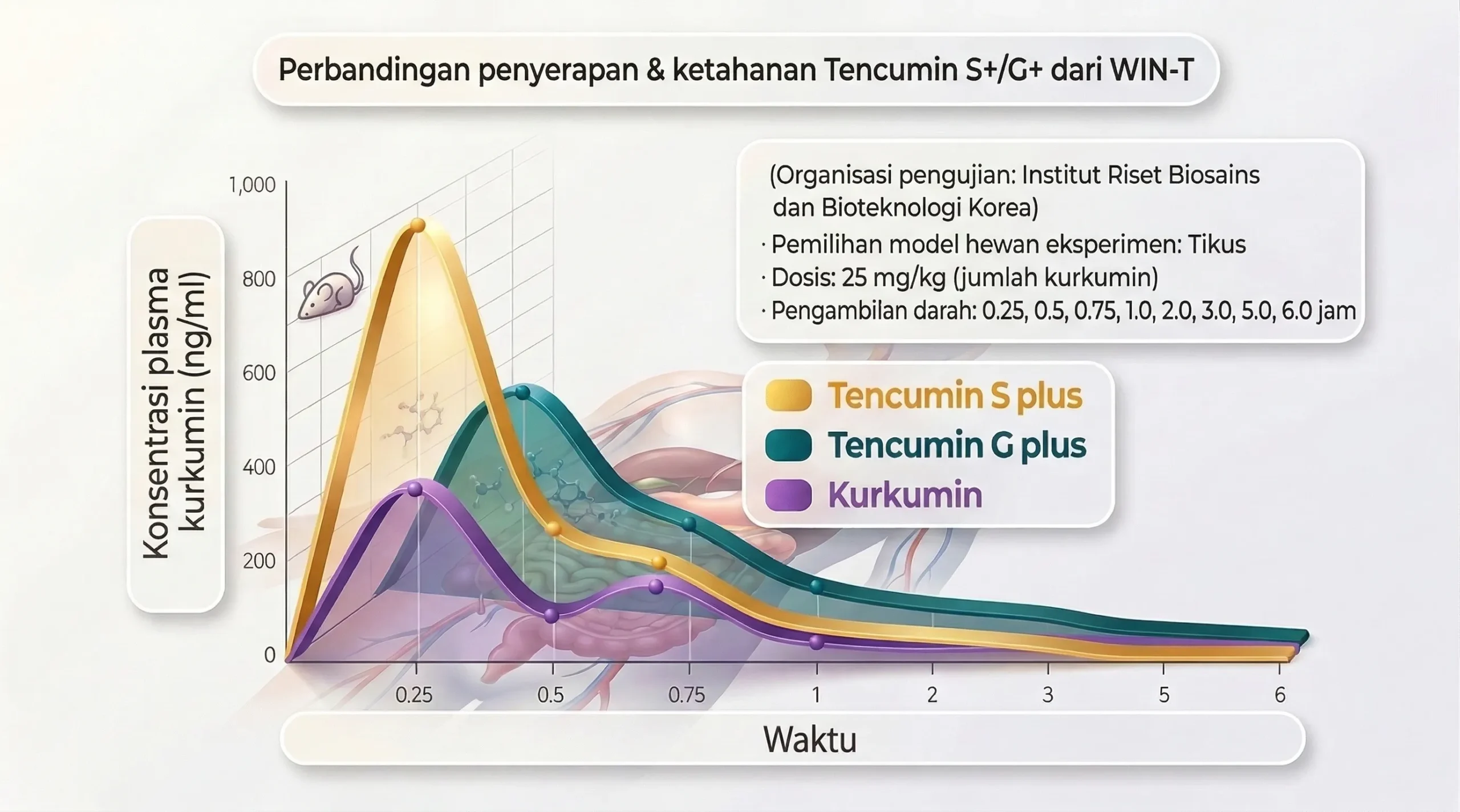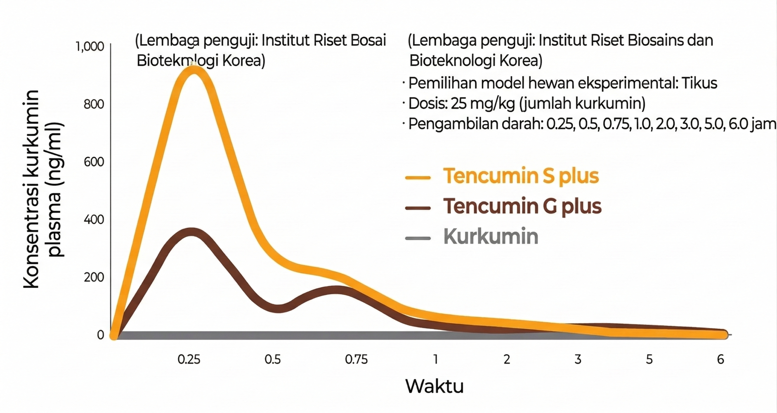 1.000x Lebih Tinggi: Tingkat penyerapan Tencumin S Plus dibandingkan curcumin standar.