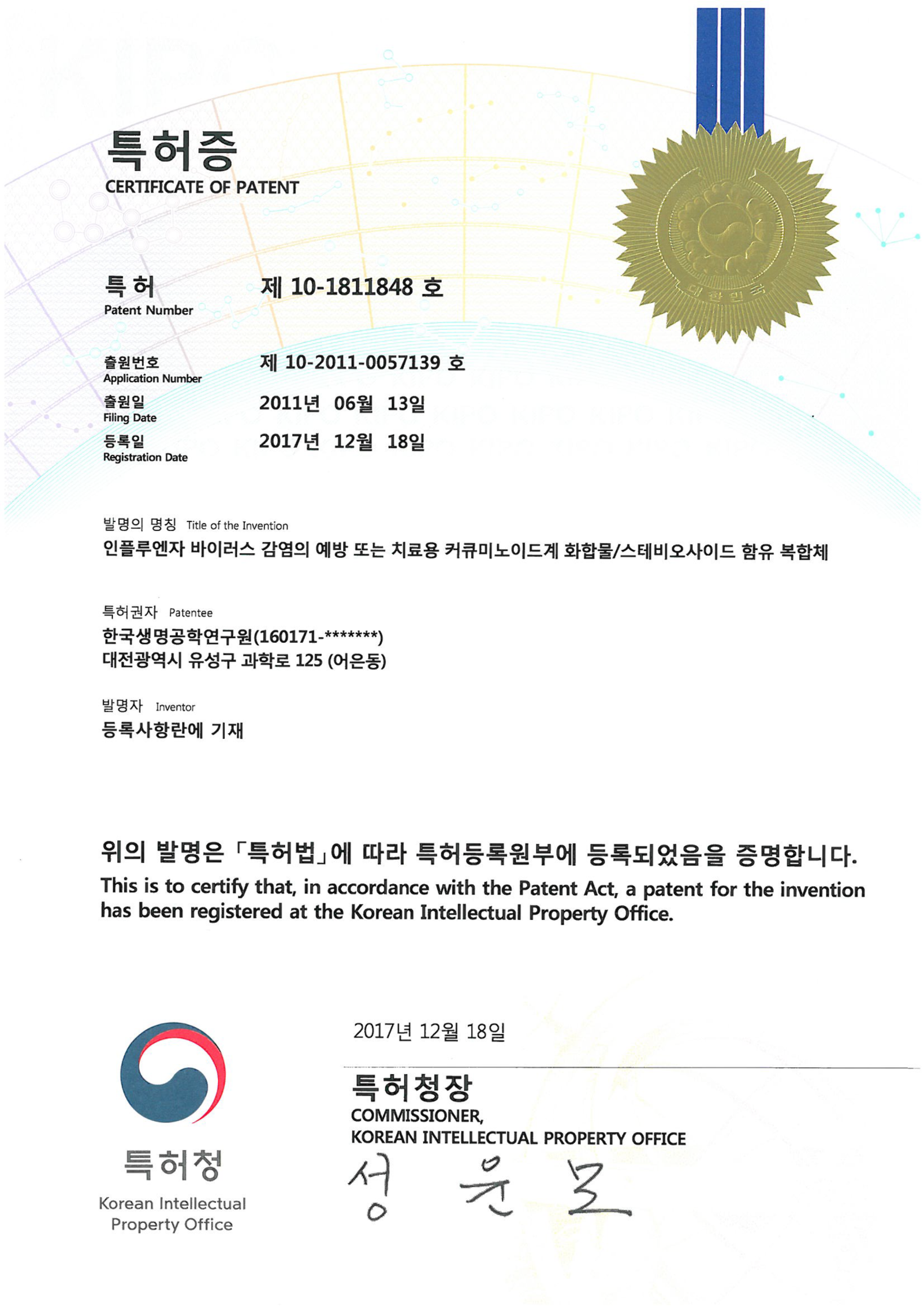 Paten No. 10-1811848